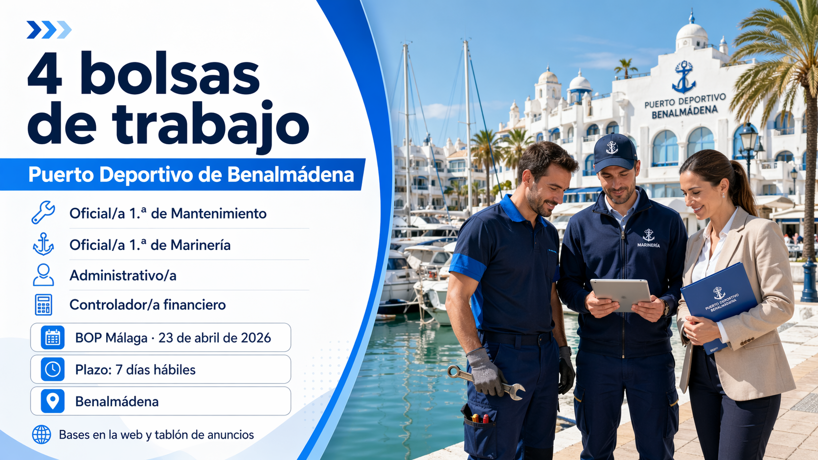 El Consejo de Administración del Puerto Deportivo de Benalmádena aprobó, el 4 de marzo de 2026, las bases para la creación de estas cuatro bolsas de trabajo: