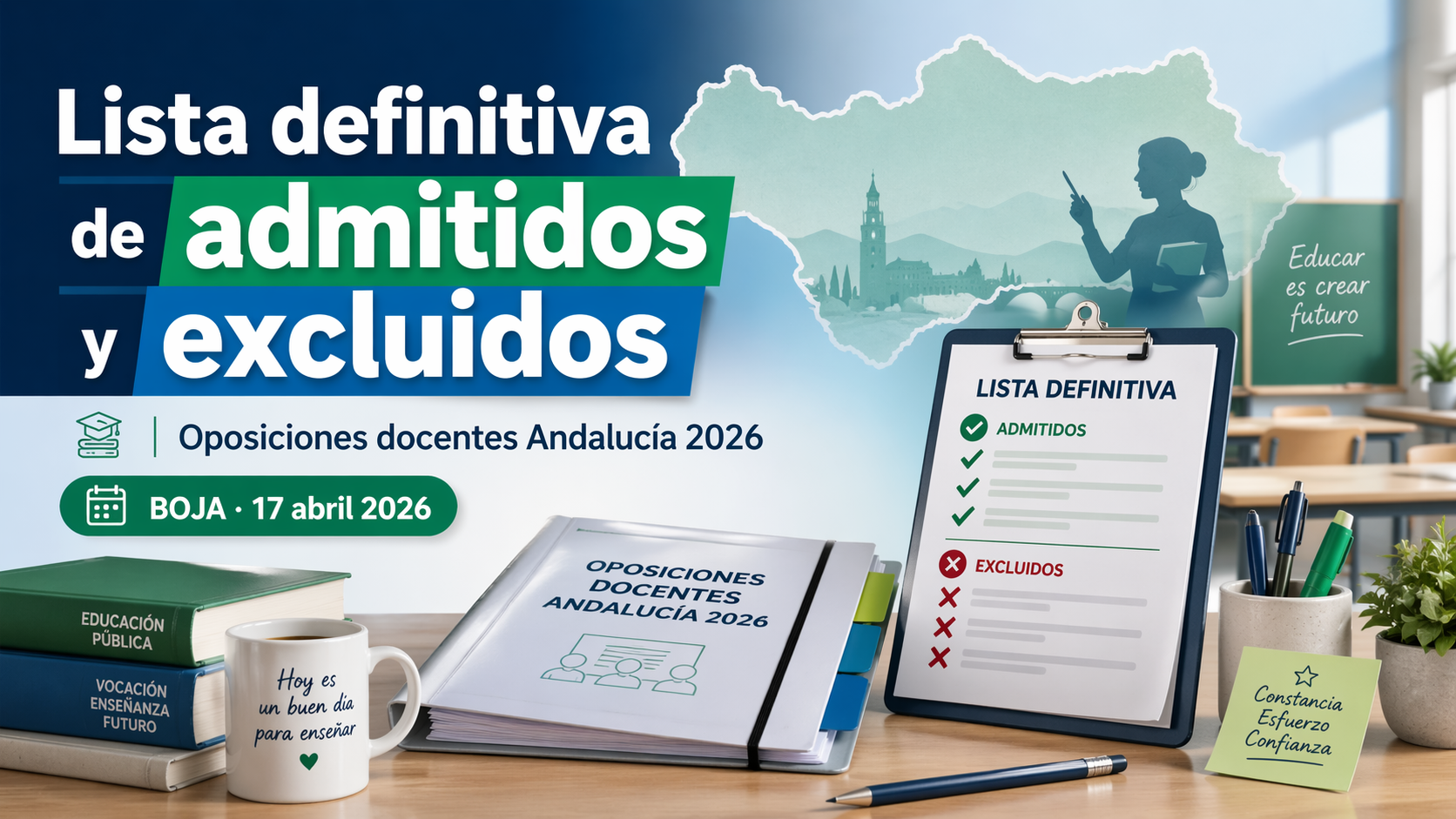 El Boletín Oficial de la Junta de Andalucía (BOJA) ha publicado en su número 73, de 17 de abril de 2026, la resolución de la Dirección General del Profesorado y Gestión de Recursos Humanos por la que se aprueba la lista definitiva del personal admitido y excluido en el procedimiento selectivo convocado por Orden de 20 de febrero de 2026 para el ingreso en distintos cuerpos docentes y el acceso al Cuerpo de Profesores de Enseñanza Secundaria. Se trata de un anuncio clave dentro del proceso de oposiciones docentes en Andalucía 2026.