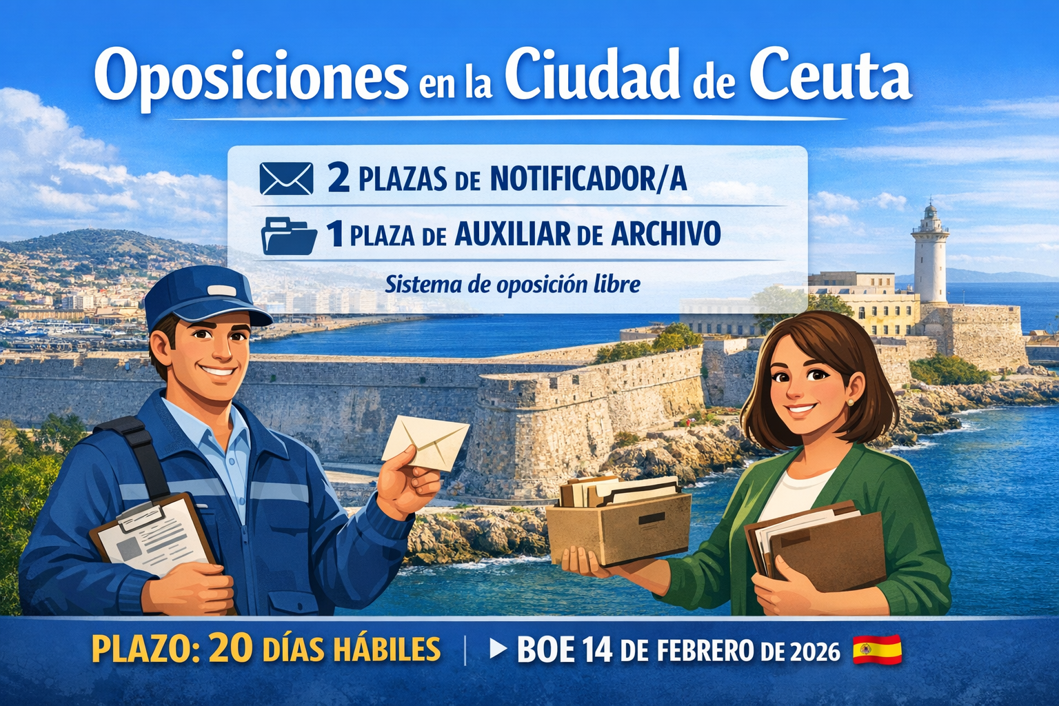 Convocatoria de oposiciones de 3 plazas en la Ciudad de Ceuta: 2 de Notificador/a y 1 de Auxiliar de Archivo