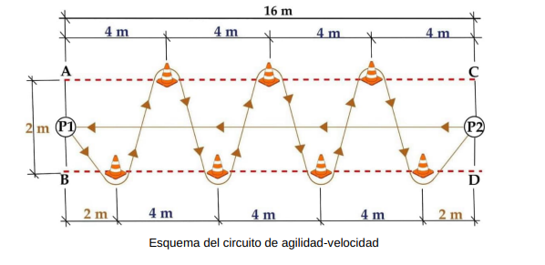 c) Detalles para una correcta ejecución: circuito sensiblemente llano, sin obstáculos en su recorrido, con terreno firme, regular y compacto, de al menos 300 metros.