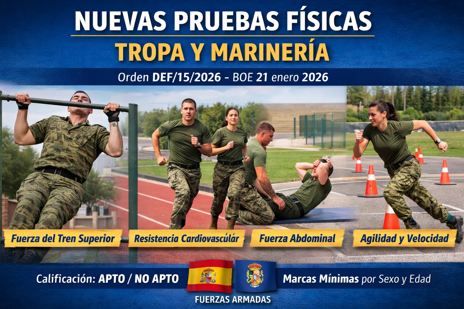 Nuevas pruebas físicas para el ingreso en Tropa y Marinería: Orden DEF/15/2026 (BOE 21 de enero de 2026)